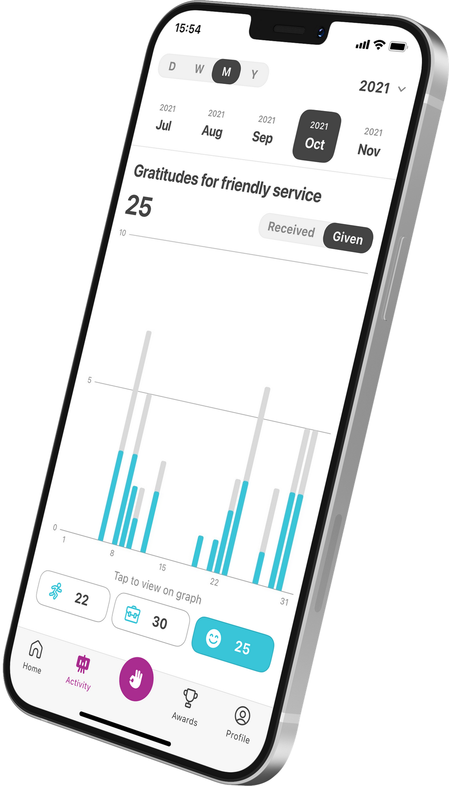 Whether you're a gratitude giver or a service superhero, or both, get a full view of your activity and see where you are making a difference.